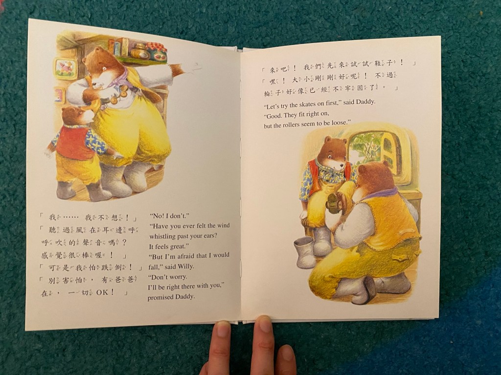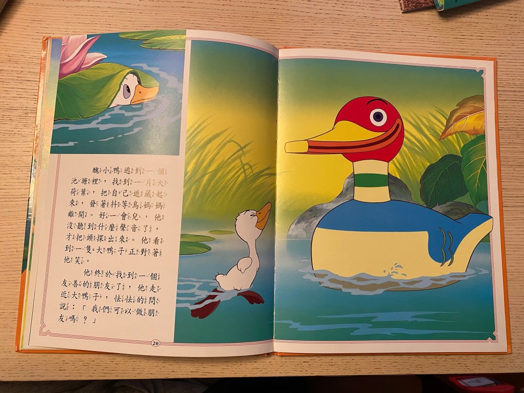 Little Bun has been reading more lately, thanks to a new batch of second-hand Chinese picture books I acquired. Among them are classic stories like “Three Little Pigs” and “Sleeping Beauty.” While these stories are familiar, finding the right version can be tricky. The right version means the content doesn’t use advanced phrases or idioms and includes zhuyin to help her read. I’m pleased to have found some books that encourage her to read more.