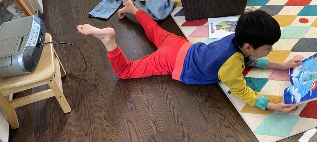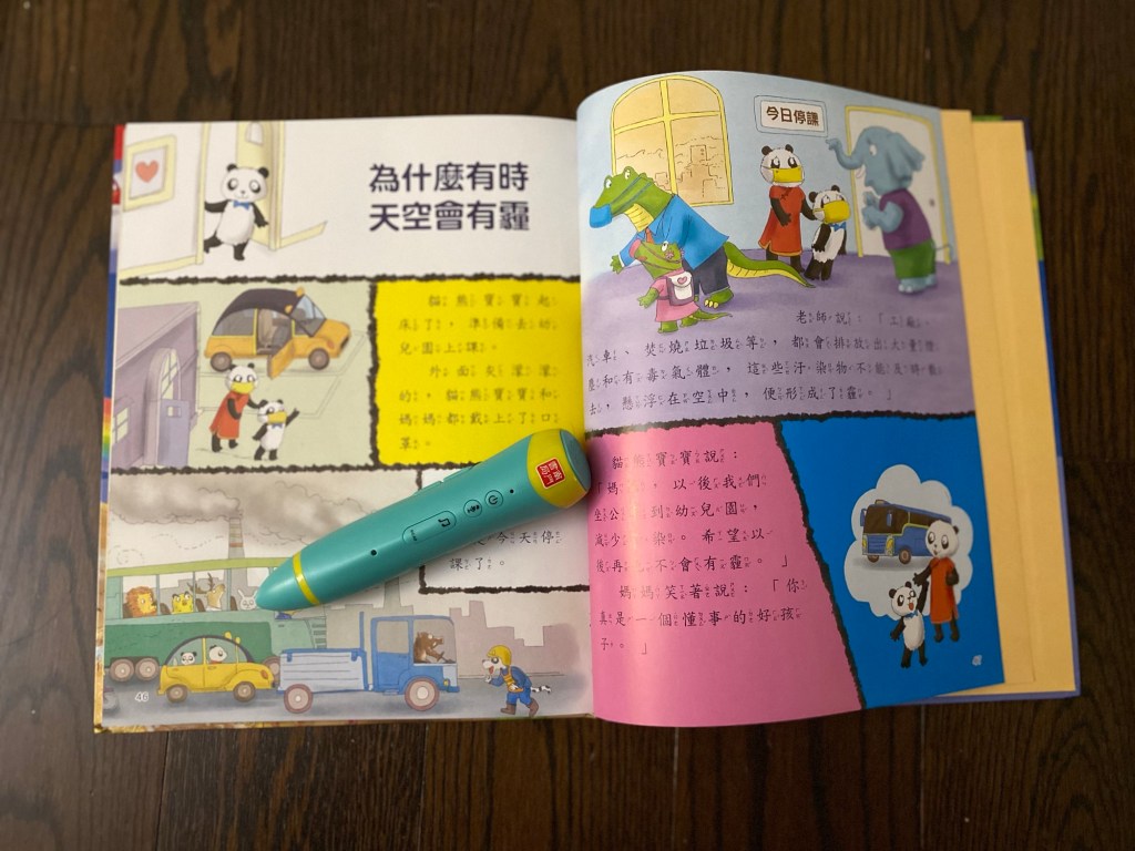 Another observation starts with Little Long Bao’s burgeoning curiosity about science. Since Chinese lessons don’t typically cover science topics, I purchased Chinese books related to science. We got this set 10萬個為什麼(彩色注音大字點讀版) last year. The whole set can be used with a reading pen, allowing him to pick up a book and use the pen to read.