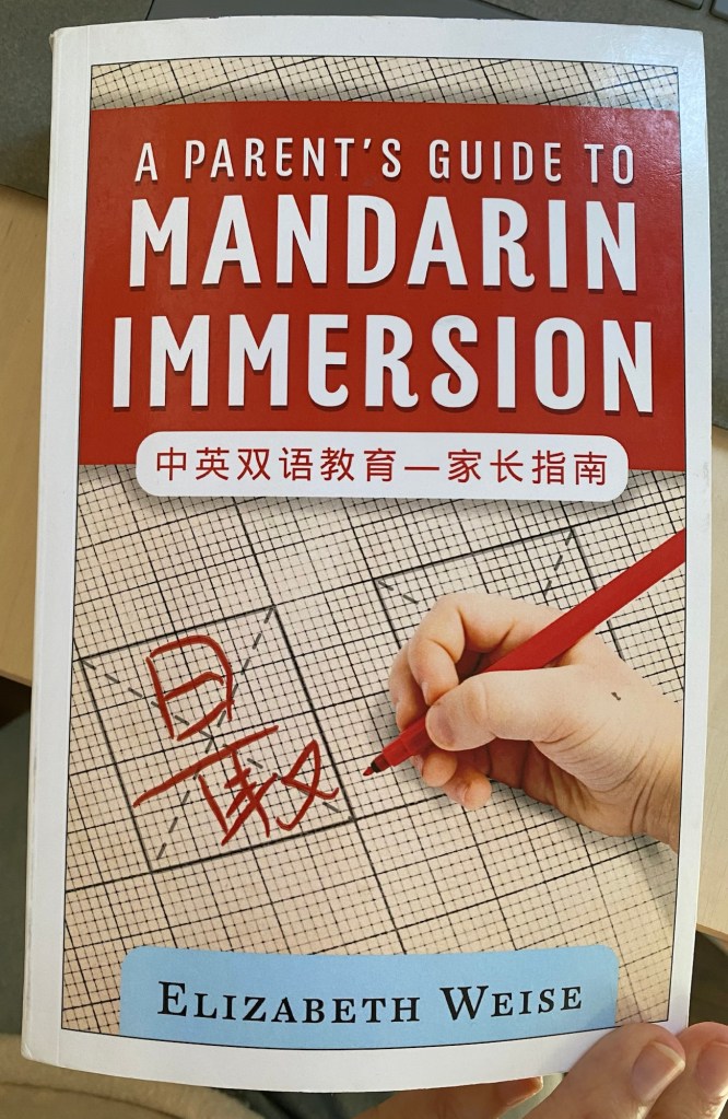 I had the opportunity to interview Elizabeth Weise for Our Chinese and English Podcast. In preparation for that episode, I read her book, A Parent’s Guide to Mandarin Immersion, and it was delightful to see so many simple explanations about Mandarin immersion schools and the expectations we should have as parents. This is also when I realized our school is not a true Mandarin immersion program because the amount of Chinese being taught doesn’t qualify it as an MI school.