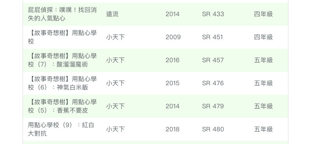 Besides Lele books, I’ve been researching graded books/leveled readers developed by Taiwanese publishers but haven’t found much. Then, I discovered a website called SmartReading.net by Taiwan Normal University. This platform categorizes the difficulty of each book with a SR number and matches it to the appropriate Taiwanese grade level.