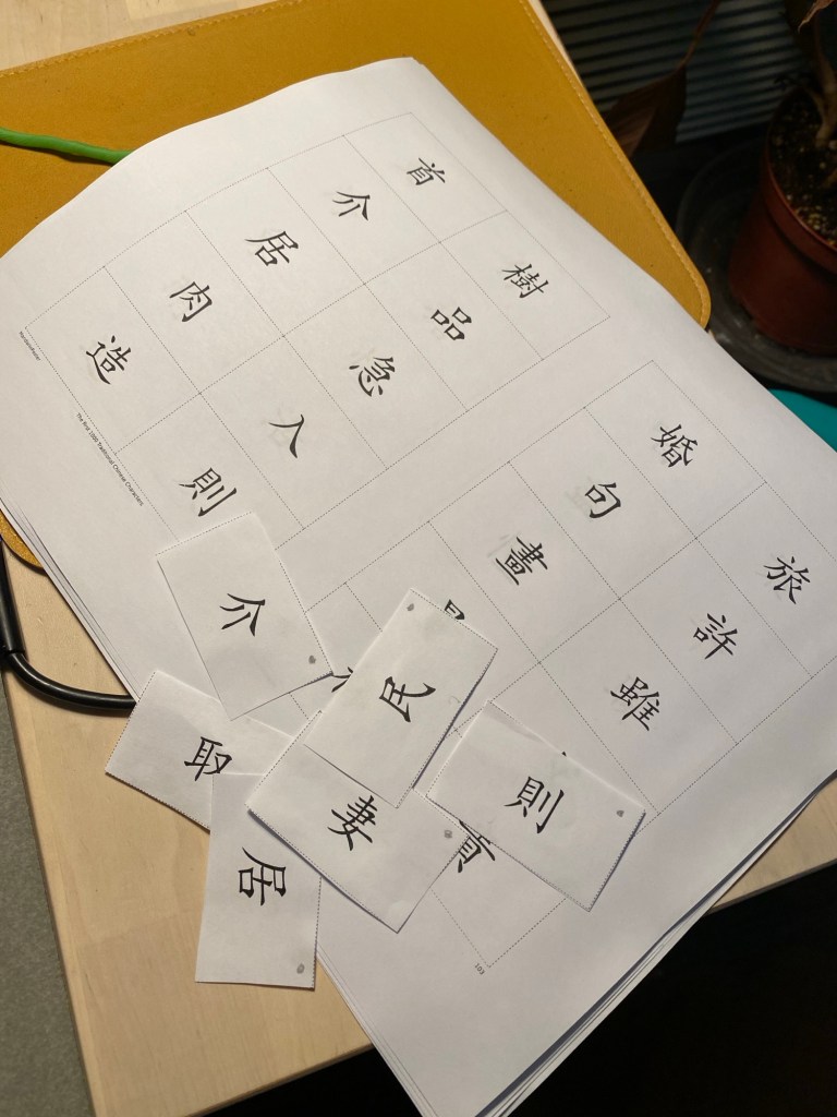 Following the common advice, I used two ziplock bags—one for characters he knows (“yes” bag) and one for those he doesn’t (“no” bag). I started with the first 250 characters, and so far, he knows fewer than 100 of them. Although I know he recognizes more characters from later lists, I’m sticking with this method to see how well it works for us.
