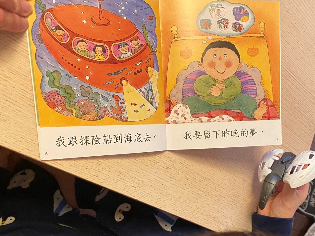 I tried using the same books I used for Little Bun, like 皮皮與波西, but it didn’t work out. There were too many characters he didn’t know, and by the end of the book, he was tired of blending Zhuyin and refused to read more books like that.