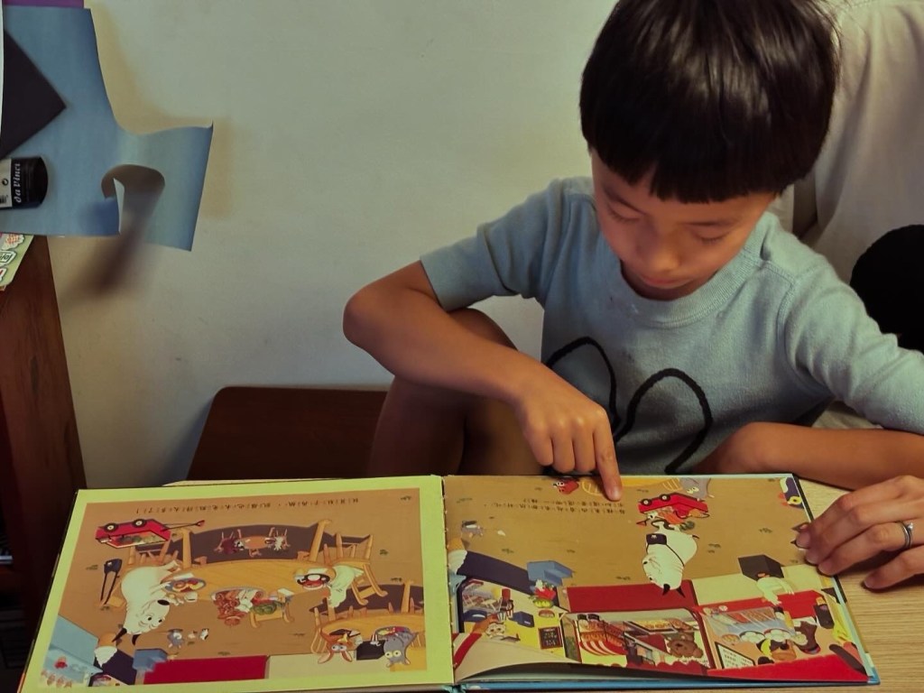 Recently, after an online teacher encouraged me to read simple books with Little Bao, I noticed his independent reading really started to take off. I then signed him up for a Zhuyin blending class combined with picture book reading, and his reading ability has significantly improved since starting.