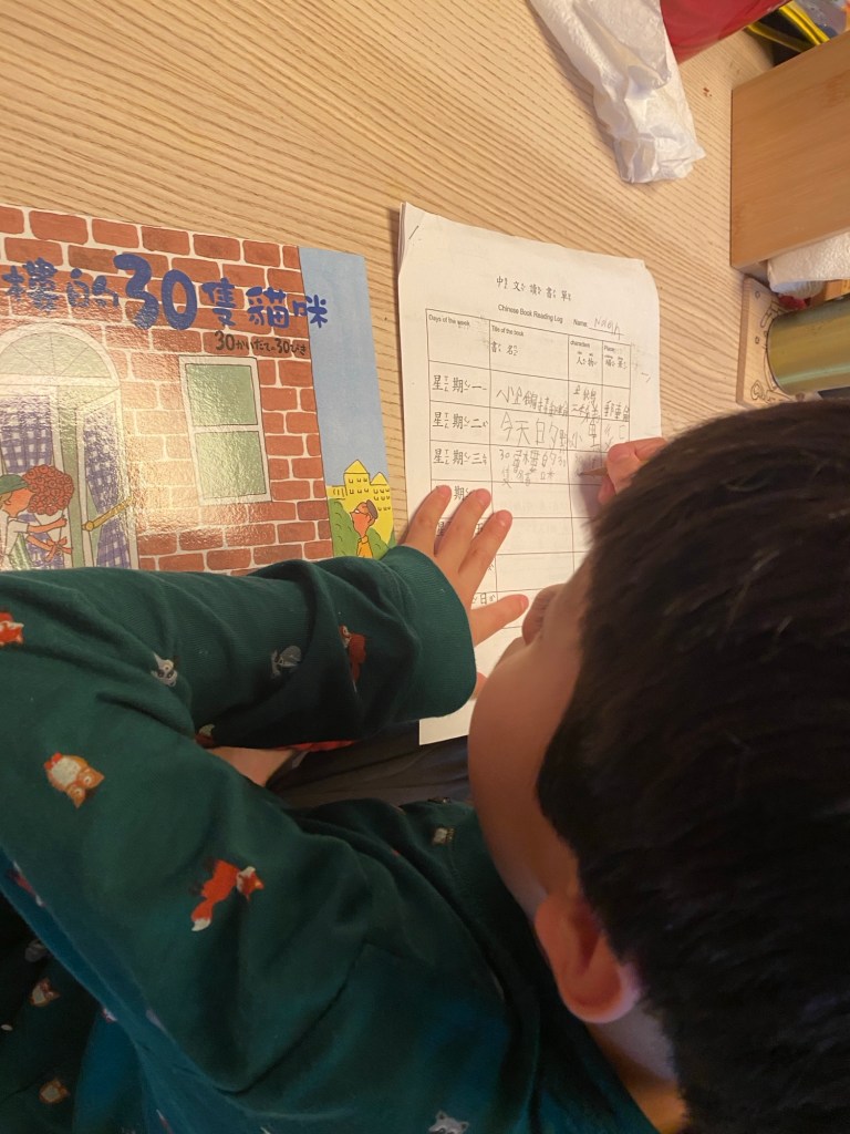 Although every day is a bit of a struggle, he’s starting to get used to the process—picking a book, reading it, and then doing the log or report. Recently, I’ve been reflecting on this, especially after hearing from other families who also struggle with Chinese homework. Whether kids find it tough or eventually get used to it, I think parents’ attitudes play a big role.