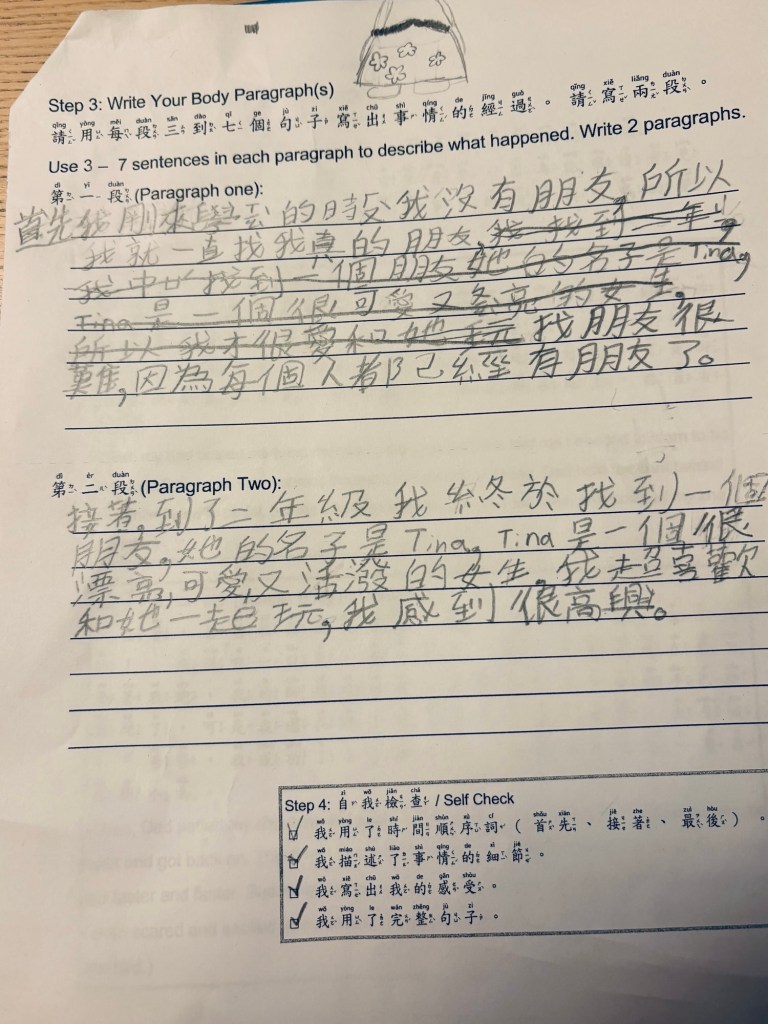 I’ve mentioned before that, for families like ours—where we already teach character recognition and practice reading at home—the Chinese curriculum in school tends to feel relatively easy. (For families who don’t speak Chinese at home and don’t teach it at all, their experience is completely different.) But now that both kids are in third grade, they’re finally learning characters they didn’t previously know, and recently I’ve started seeing them write Chinese compositions.